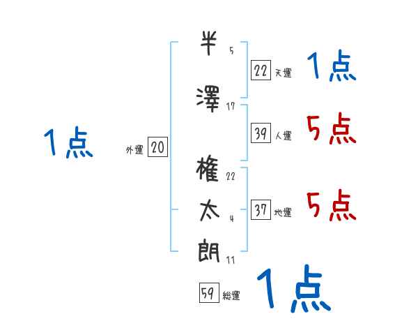 半澤権太朗さんの画数の鑑定結果