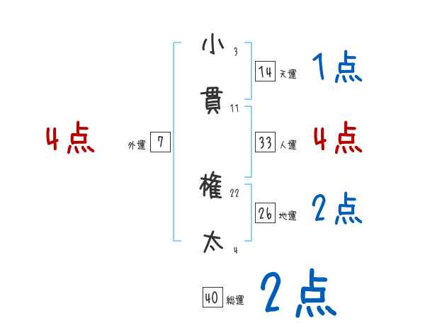 小貫権太さんの画数の鑑定結果