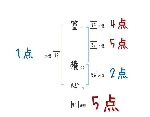 人運![]() | 篁権心さんの人運は37画の5つ星!努力家で順応性に優れる。現実的な考え方ができ忠実に物事をこなす。 性格や才能などを表す2番目に重要な運勢です。人間関係や協調性、社会的な成功に影響します。主に20歳から50歳ぐらいまでの中年期の運勢を表します。 |