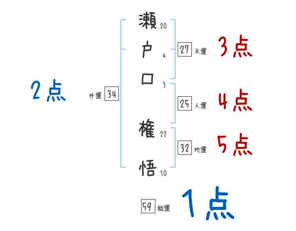 家系が持つ宿命的な運勢を表します。祖先から受け継いだ苗字ですので自分の力が及びません。家柄を象徴します。