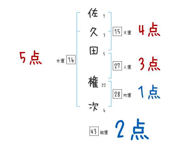 佐久田権次さんの画数の鑑定結果