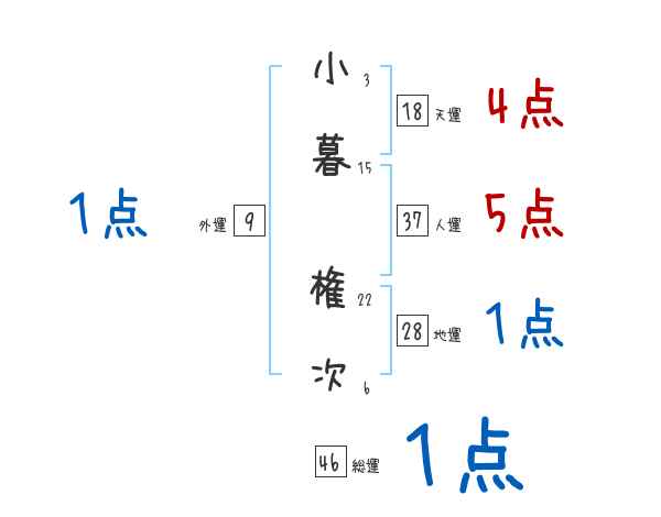 小暮権次さんの画数の鑑定結果
