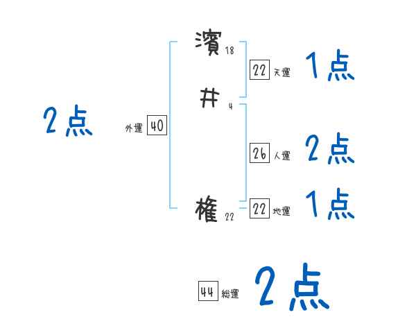 濱井権さんの画数の鑑定結果