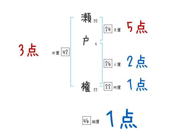 瀬戸権さんの画数の鑑定結果