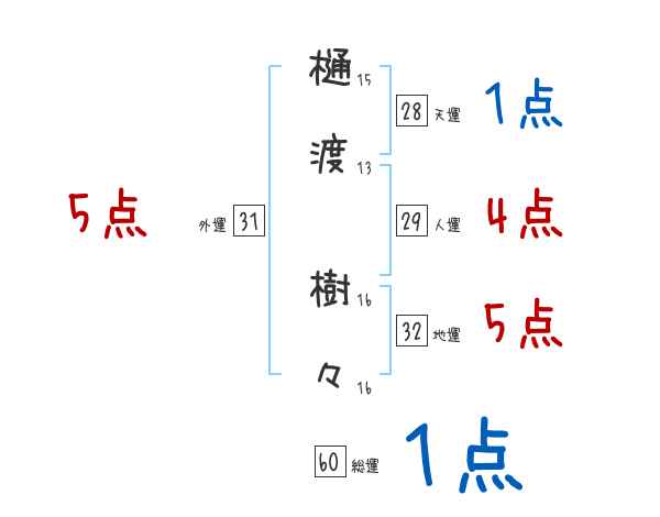 地運![]() | 樋渡樹々さんの地運は32画の5つ星!柔軟性があり成功する。チャンスが多く金運が良い。 個性を表す基礎的な運勢です。性格形成や対人関係、行動力など家庭環境に影響されます。主に誕生してから20歳くらいまでの若年期の運勢を表します。 |