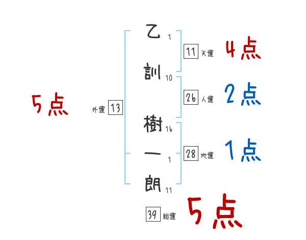 人運![]() | 乙訓樹一朗さんの人運は26画の2つ星!波瀾万丈かも。信頼できる人を大事にしましょう。 性格や才能などを表す2番目に重要な運勢です。人間関係や協調性、社会的な成功に影響します。主に20歳から50歳ぐらいまでの中年期の運勢を表します。 |