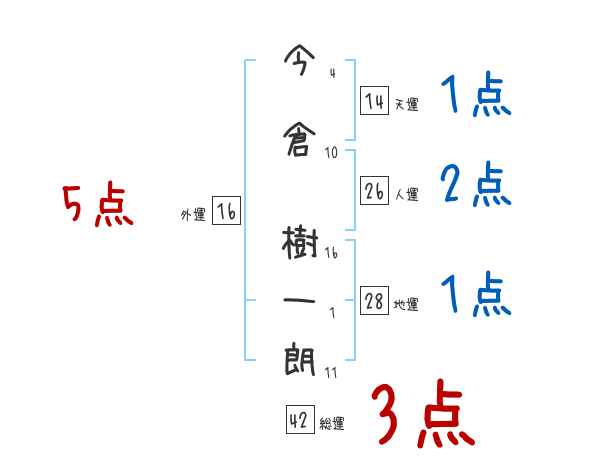 今倉樹一朗さんの画数の鑑定結果