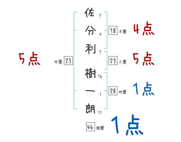人運![]() | 佐分利樹一朗さんの人運は23画の5つ星!想像力に優れ活力がある。一代で成功し名誉を手に入れる。 性格や才能などを表す2番目に重要な運勢です。人間関係や協調性、社会的な成功に影響します。主に20歳から50歳ぐらいまでの中年期の運勢を表します。 |