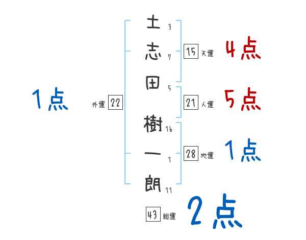 天運![]() | 土志田樹一朗さんの天運は15画の4つ星!人徳があり出世する。順調に物事を進め円満な人生。 家系が持つ宿命的な運勢を表します。祖先から受け継いだ苗字ですので自分の力が及びません。家柄を象徴します。 |