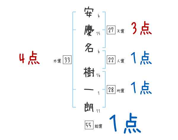 安慶名樹一朗さんの画数の鑑定結果