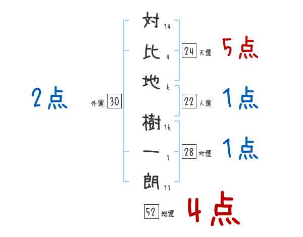対比地樹一朗さんの画数の鑑定結果