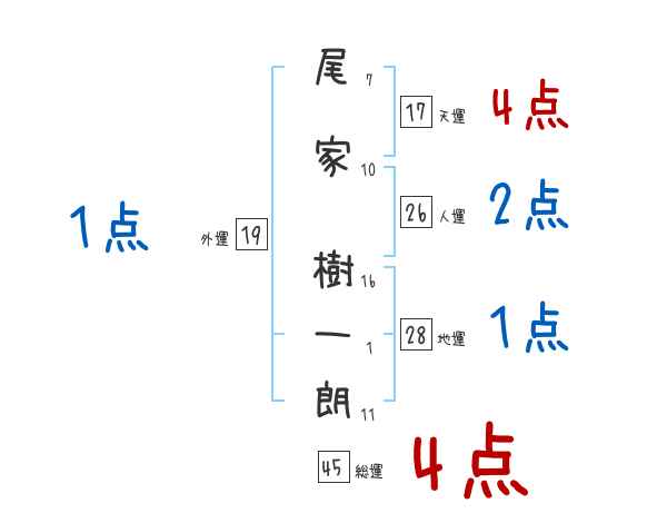 尾家樹一朗さんの画数の鑑定結果