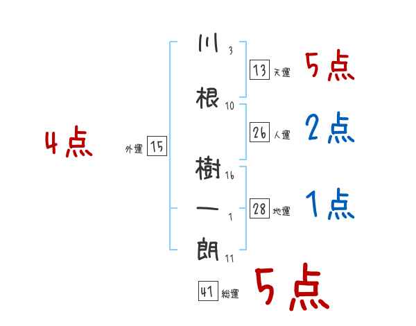川根樹一朗さんの画数の鑑定結果