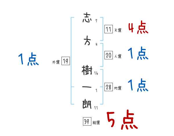 天運![]() | 志方樹一朗さんの天運は11画の4つ星!着実に富や地位を得る幸運な人生。 家系が持つ宿命的な運勢を表します。祖先から受け継いだ苗字ですので自分の力が及びません。家柄を象徴します。 |