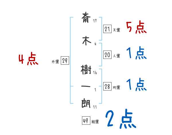斎木樹一朗さんの画数の鑑定結果
