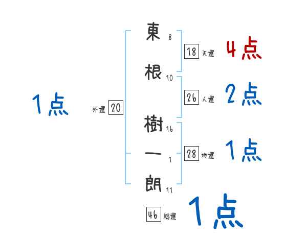 天運![]() | 東根樹一朗さんの天運は18画の4つ星!情熱的で剛気。忍耐力があり信頼される。 家系が持つ宿命的な運勢を表します。祖先から受け継いだ苗字ですので自分の力が及びません。家柄を象徴します。 |
