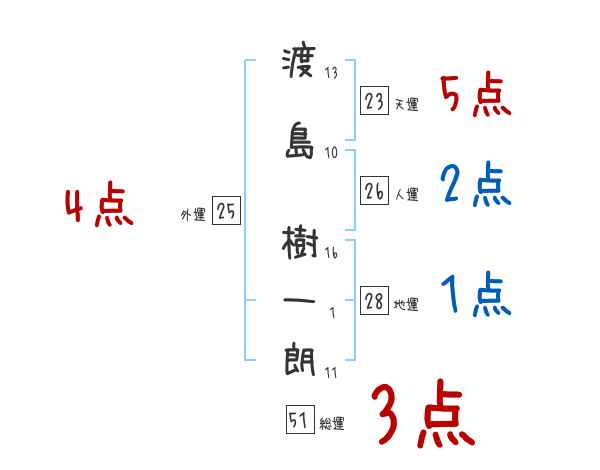 渡島樹一朗さんの画数の鑑定結果