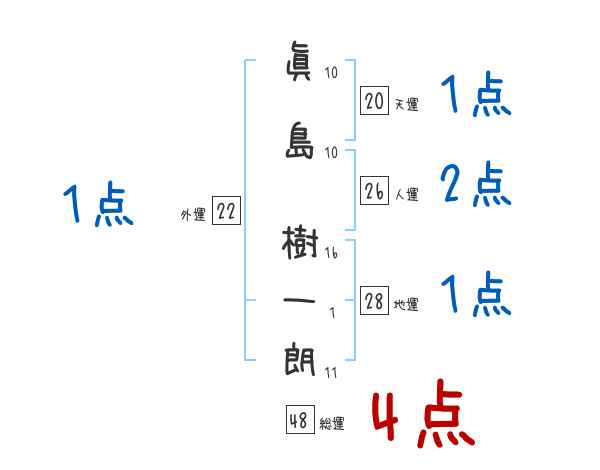 地運![]() | 眞島樹一朗さんの地運は28画の1つ星!家庭環境に注意。スポーツで活躍できる能力があるかも。 個性を表す基礎的な運勢です。性格形成や対人関係、行動力など家庭環境に影響されます。主に誕生してから20歳くらいまでの若年期の運勢を表します。 |