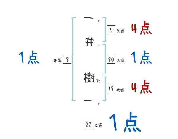 天運![]() | 一井樹一さんの天運は5画の4つ星!健康で安泰。協調性に優れ、財産に恵まれる。 家系が持つ宿命的な運勢を表します。祖先から受け継いだ苗字ですので自分の力が及びません。家柄を象徴します。 |