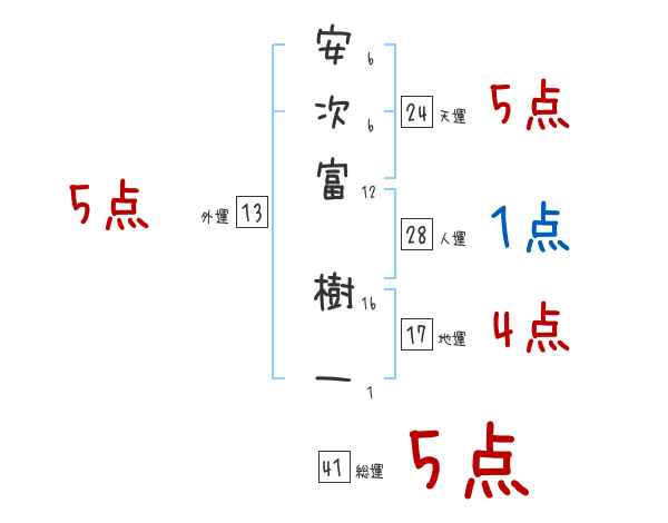 安次富樹一さんの画数の鑑定結果