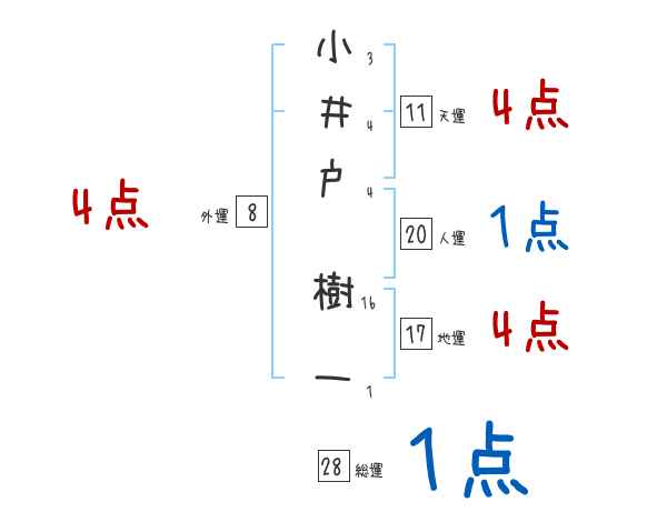 小井戸樹一さんの画数の鑑定結果