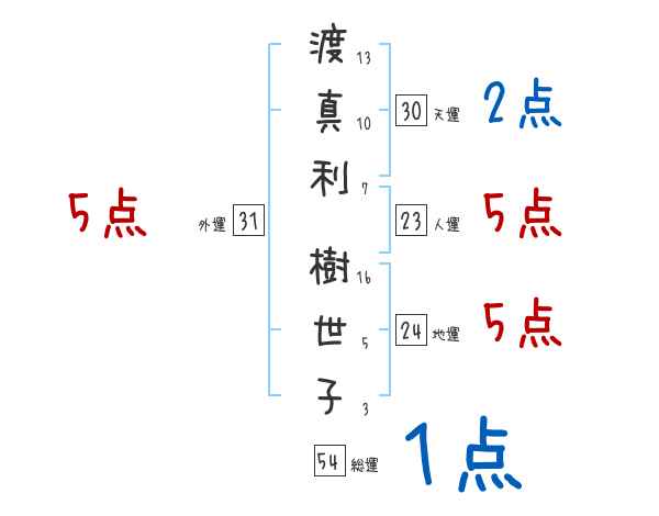 渡真利樹世子さんの画数の鑑定結果
