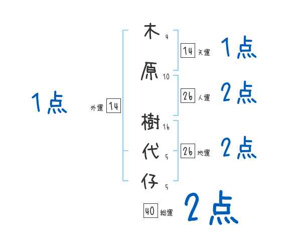 天運![]() | 木原樹代仔さんの天運は14画の1つ星!人に対して優しいがストレスを溜め込みがち。人間関係のトラブルを避けるよう気をつけましょう。 家系が持つ宿命的な運勢を表します。祖先から受け継いだ苗字ですので自分の力が及びません。家柄を象徴します。 |