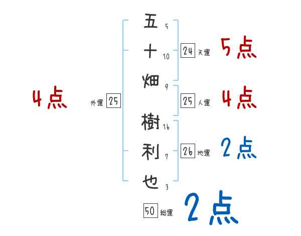 総運![]() | 五十畑樹利也さんの総運は50画の2つ星!浮き沈みが激しく不安定。しりすぼみに衰退しやすいので注意しましょう。 あなたの人生を表す1番重要な運勢です。生涯を通じて影響する総合運となり、主に50歳以降の晩年期に影響を及ぼします。 |