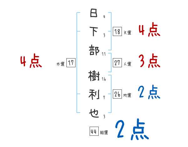 日下部樹利也さんの画数の鑑定結果
