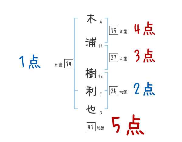 木浦樹利也さんの画数の鑑定結果
