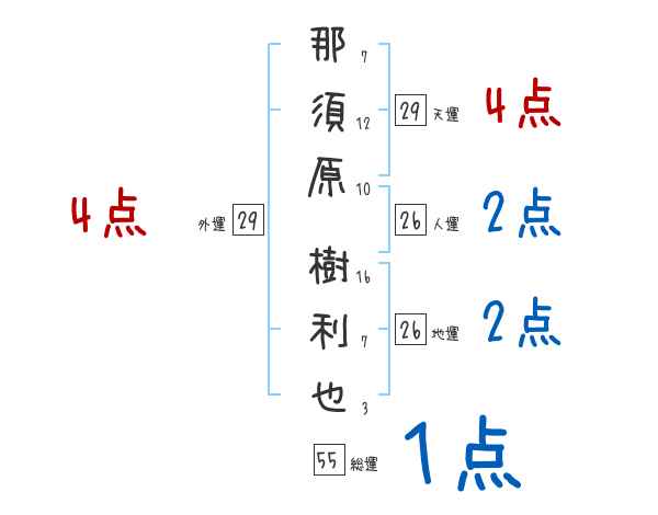 那須原樹利也さんの画数の鑑定結果