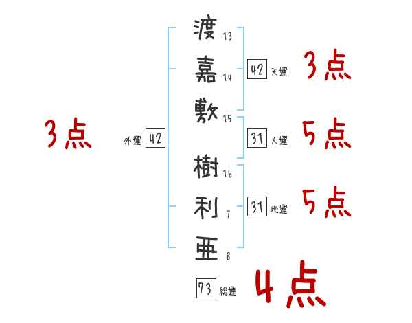 渡嘉敷樹利亜さんの画数の鑑定結果