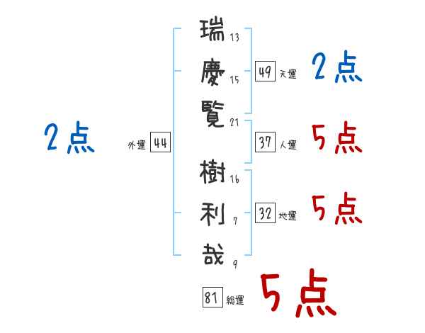 瑞慶覧樹利哉さんの画数の鑑定結果