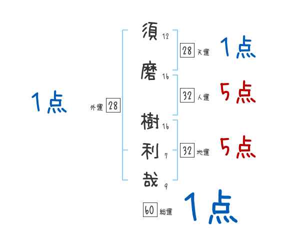 須磨樹利哉さんの画数の鑑定結果