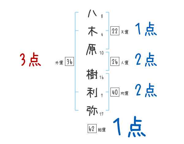 外運![]() | 八木原樹利弥さんの外運は36画の3つ星!先見性が豊かです。多少神経質で苦労することも。 生活面を象徴する運勢です。外部から受ける影響力を表し、結婚運、家庭運や職場、環境への順応性を表します。 |