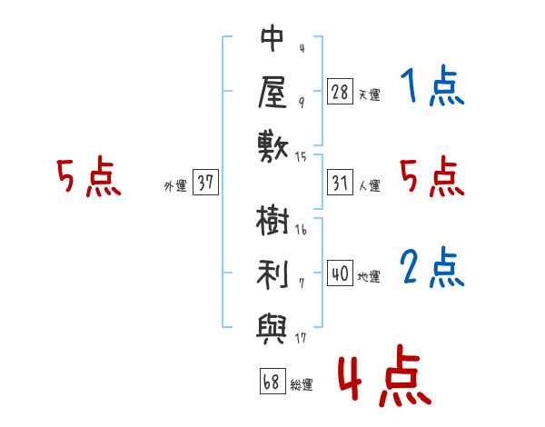 外運![]() | 中屋敷樹利與さんの外運は37画の5つ星!努力家で順応性に優れる。現実的な考え方ができ忠実に物事をこなす。 生活面を象徴する運勢です。外部から受ける影響力を表し、結婚運、家庭運や職場、環境への順応性を表します。 |