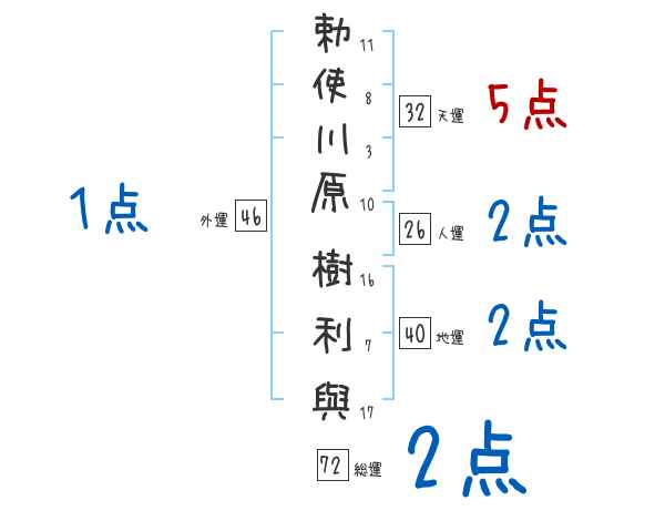 天運![]() | 勅使川原樹利與さんの天運は32画の5つ星!柔軟性があり成功する。チャンスが多く金運が良い。 家系が持つ宿命的な運勢を表します。祖先から受け継いだ苗字ですので自分の力が及びません。家柄を象徴します。 |