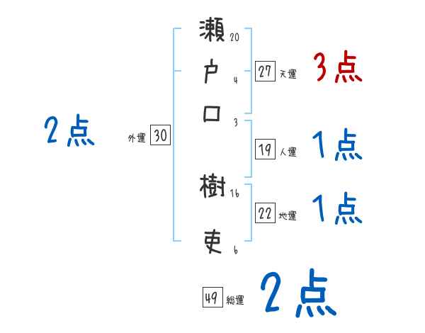 瀬戸口樹吏さんの画数の鑑定結果