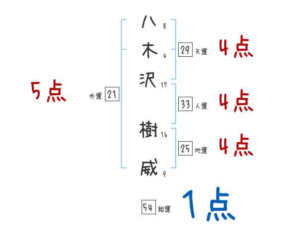 外運![]() | 八木沢樹威さんの外運は21画の5つ星!統率力がある。独立し成功する。名誉を手に入れる。 生活面を象徴する運勢です。外部から受ける影響力を表し、結婚運、家庭運や職場、環境への順応性を表します。 |