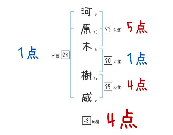 外運![]() | 河原木樹威さんの外運は28画の1つ星!家庭環境に注意。スポーツで活躍できる能力があるかも。 生活面を象徴する運勢です。外部から受ける影響力を表し、結婚運、家庭運や職場、環境への順応性を表します。 |