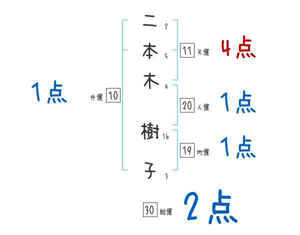 二本木樹子さんの画数の鑑定結果
