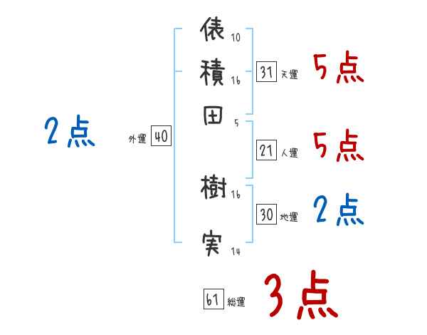 外運![]() | 俵積田樹実さんの外運は40画の2つ星!自信過剰で物事に固執するためトラブルに注意。 生活面を象徴する運勢です。外部から受ける影響力を表し、結婚運、家庭運や職場、環境への順応性を表します。 |
