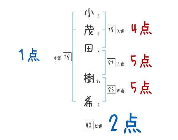 小茂田樹希さんの画数の鑑定結果