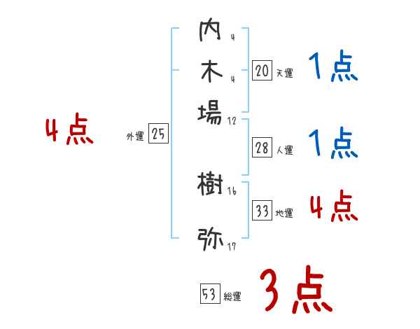 内木場樹弥さんの画数の鑑定結果