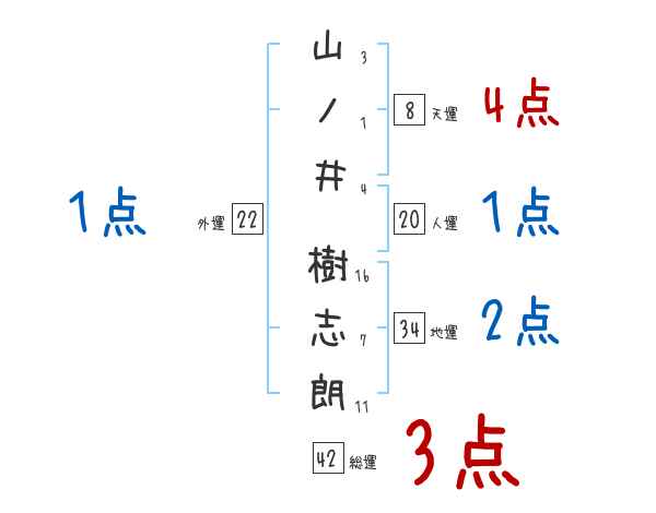 家系が持つ宿命的な運勢を表します。祖先から受け継いだ苗字ですので自分の力が及びません。家柄を象徴します。
