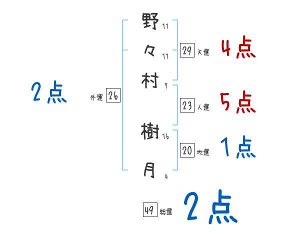 野々村樹月さんの画数の鑑定結果