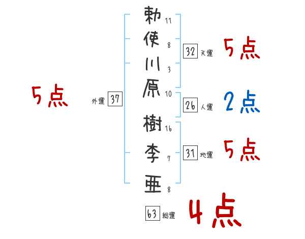 勅使川原樹李亜さんの画数の鑑定結果