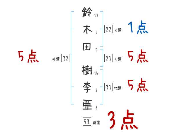 外運![]() | 鈴木田樹李亜さんの外運は32画の5つ星!柔軟性があり成功する。チャンスが多く金運が良い。 生活面を象徴する運勢です。外部から受ける影響力を表し、結婚運、家庭運や職場、環境への順応性を表します。 |