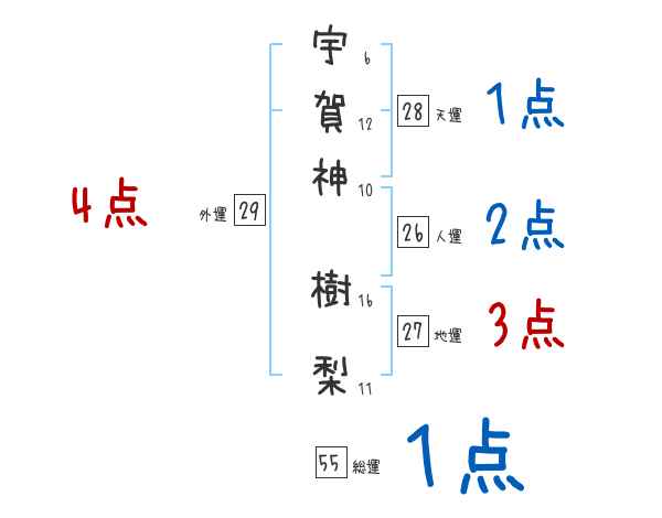 宇賀神樹梨さんの画数の鑑定結果