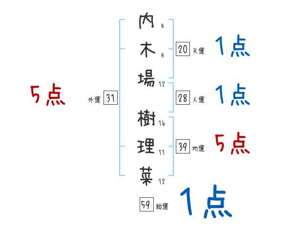 内木場樹理菜さんの画数の鑑定結果